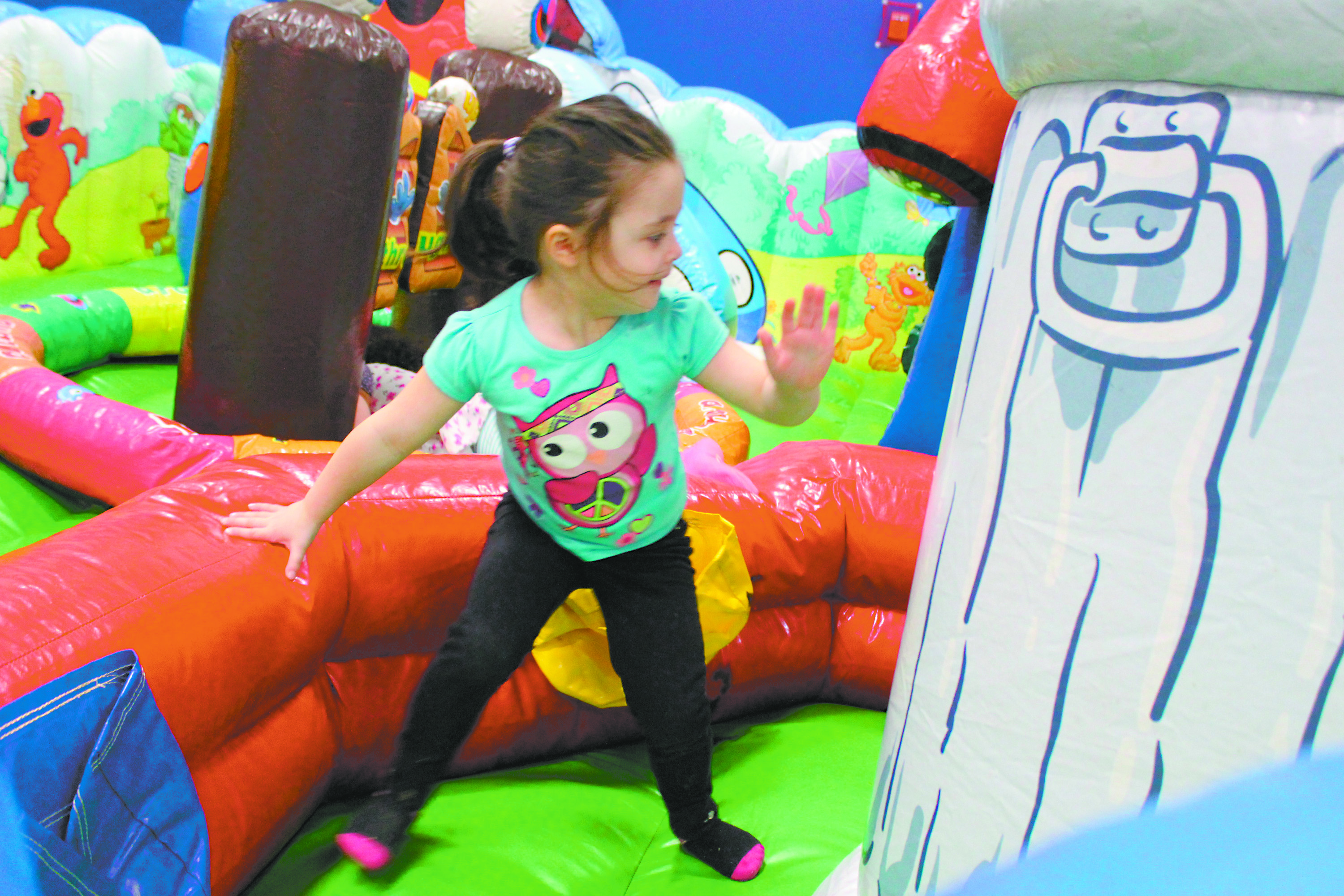 MILFORD – The older kids were excited about the big plastic climbing structure and a “Sesame Street” bounce house, but Elowyn Chaput, who is almost 2, found her challenge in a small, soft wedge she climbed over and over again.