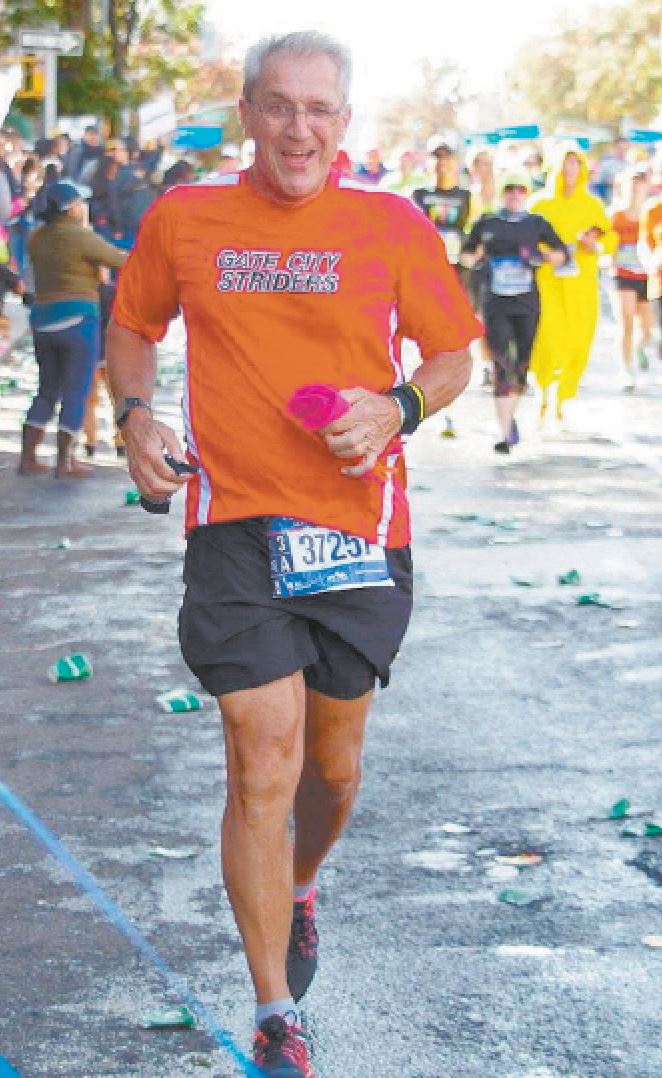 Courtesy photo David Salvas is shown at the New York City Marathon last November, his 98th marathon. The Boston Marathon next week will be his 100th.