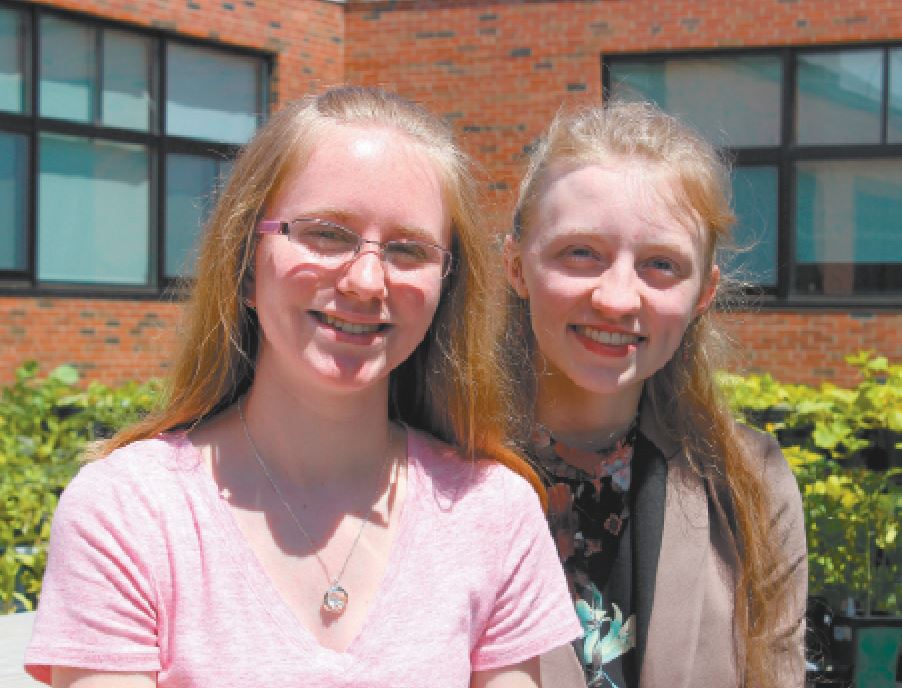 Photo by KATHY CLEVELAND Karen Jorgensen, left, and Skylar Curtis will graduate Saturday from Milford High School.