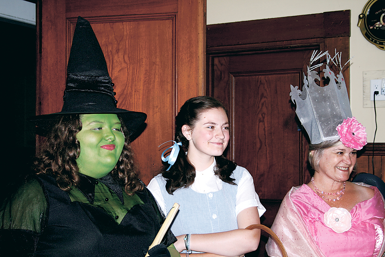 WILTON – Sleepy commuters on their way to work Monday morning were treated to sights on Main Street sure to wake them up: a black-clad, green-faced Wicked Witch of the West, Glinda the Good Witch in shimmering pink, and Dorothy in her ruby red shoes carrying Toto in a basket.