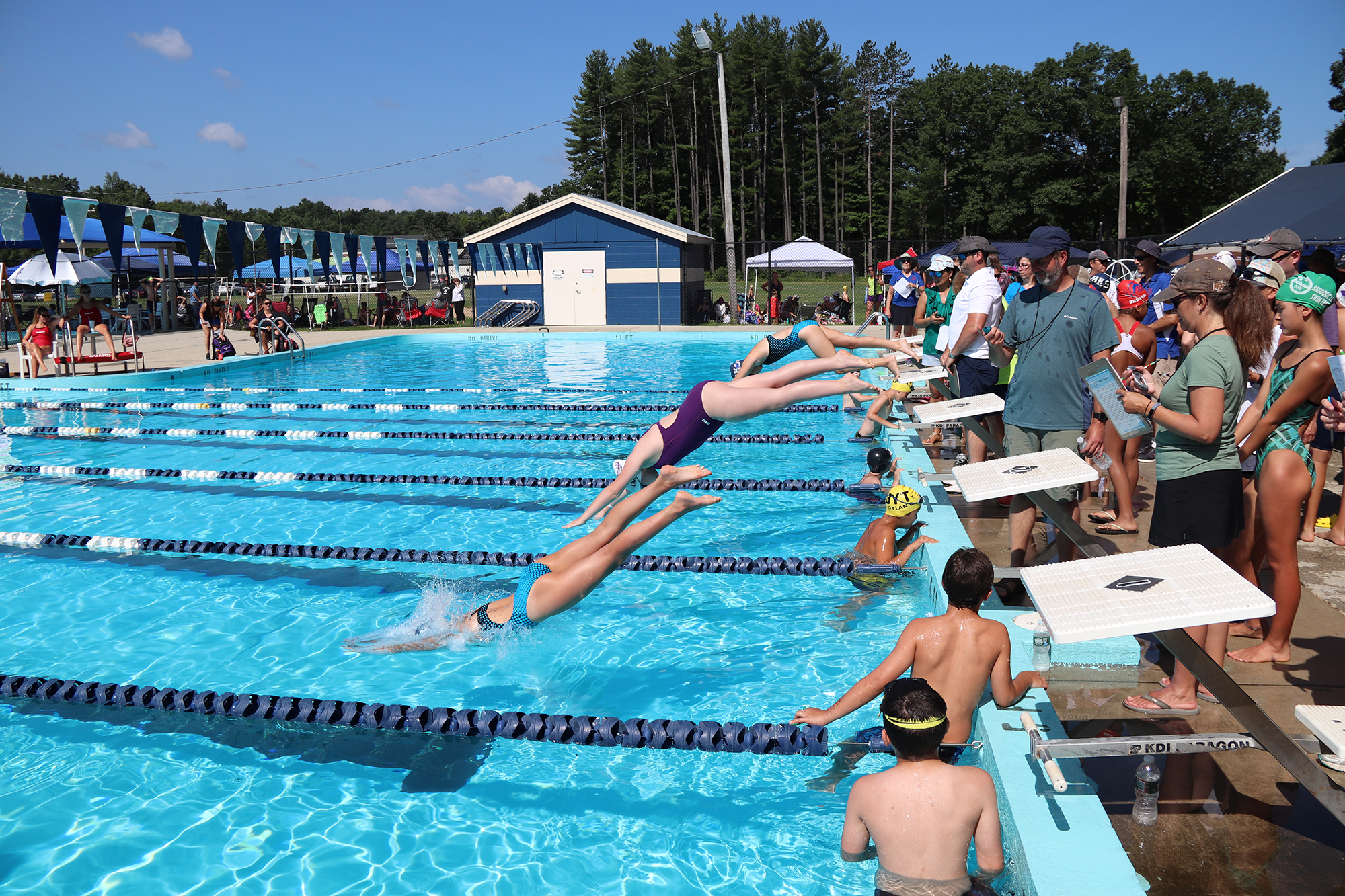“They like coming, because it’s a home town meet and it’s laidback,” he said. “The Nashua Y came even though they’re not in our league and they put their kids in the water to swim. The ones that are just beginning to swim are only in their second- or third-year swimming. Not the high caliber ones that would go to a sanctioned meet or age group meet. It’s just to get the experience. They’re not little fish in a big pond- now they’re big fish in a little pond. They have a chance to place and get some awards. (Kids’ age range goes from 5 – 19 years old.)