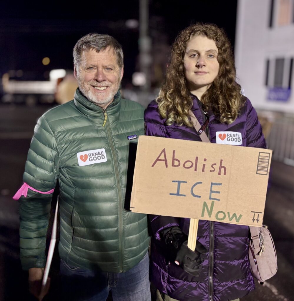 The protest was held the day after ICE agents killed Renee Good, a 37-year-old mother, in Minneapolis, when she joined an effort to prevent agents from infiltrating a neighborhood.