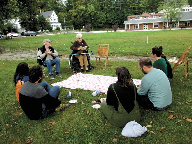 WILTON – Pie and Poetry in the Park: a half dozen poets, a dozen pie makers and about two dozen people to enjoy it all outdoors on a beautiful fall afternoon.