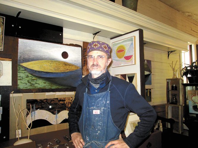 WILTON – Artist Mike Kline has turned what was for generations Putnam’s Clothing Store on Main Street into Galerie Oiscaux, a showing of his work he calls “mixed media.”