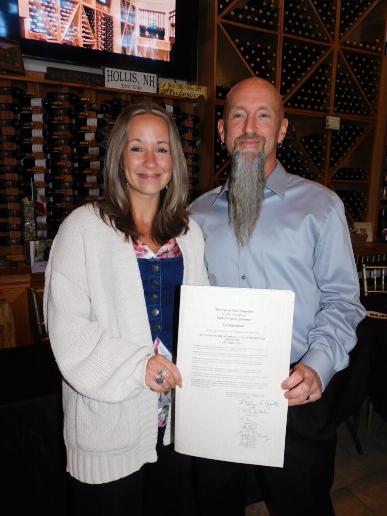 HOLLIS – The State of New Hampshire “through Her Excellency Kelly A. Ayotte, Governor,” did bestow on Oct.1 during an assembly at Fulchino Vineyard in Hollis, a Commendation that officially honored the Merrimack Valley Beekeepers Association (MVBA), a local organization of 400 professional and amateur beekeeping enthusiasts, for its dedication to the science, enjoyment and promotion of apiculture — beekeeping.
