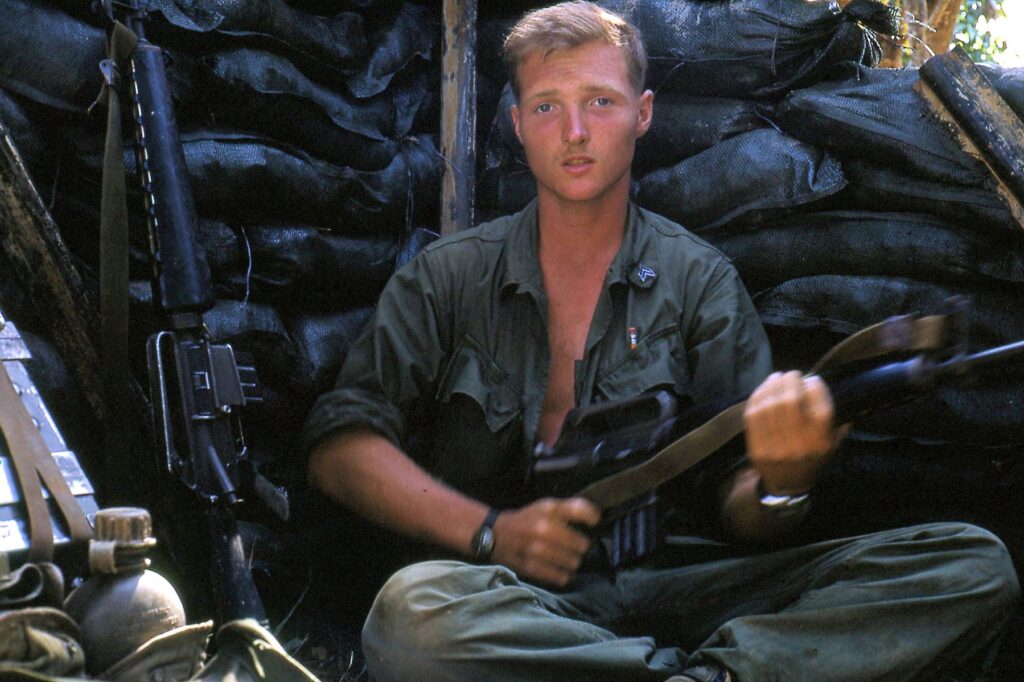 Jackson was drafted into the Army in January 1968 and served for the next twenty months. He was deployed to Vietnam with the Ninth Infantry Division. On Feb. 28, 1969, Jackson’s platoon was split in half and set up ambush positions on either side of a thickly wooded jungle area where it was suspected there was Viet Cong activity. After an uneventful night, Jackson’s half of the platoon was ordered to join up with the rest of the platoon by traversing dense vegetation via a path with a branch across the opening. From previous experience, the platoon strongly suspected that the branch was booby trapped. After closely inspecting the branch, Jackson instructed the squad member who carried a grenade launcher to fire a round at the branch, but he overshot the branch. The squad then fired several M16 rounds at the branch before Jackson gave the point man the order to proceed with caution. The booby trap exploded immediately, badly injuring his point man and hitting Jackson with two pieces of shrapnel in the abdomen. Several other soldiers received minor leg wounds. The squad called a medivac helicopter for the point man. By that time, Jackson realized that his injuries were more serious than he first thought, so he was put on the chopper with the point man and flown back to their basecamp, Dong Tam.